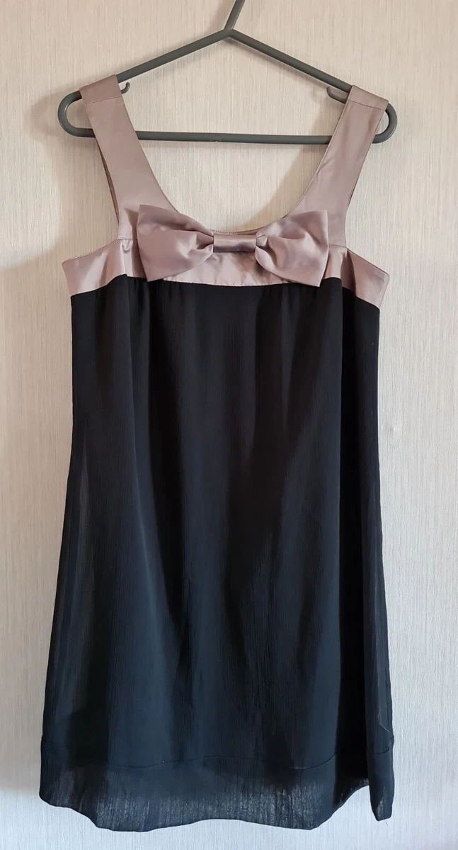 Women S Mini Dress Black With Brown Bow Wide Strap Vero Moda Uk Size M Ebay
